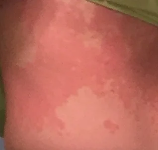 "Nah", she said. She attributed the hives to everything except the body wash. The hives were itchy to the point of painful. Her skin looked like she was suffering from chemical burns but she couldn't determine the cause of this irritation. So she made an appointment with her dermatologist for an assessment.